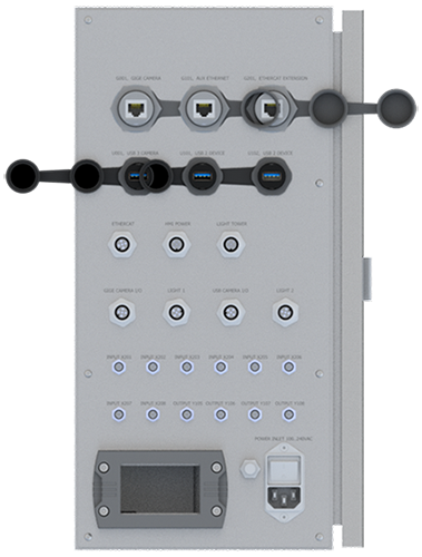 Physical I/O | 12 channels digital inputs, 16 channels digital outputs, 24VDC, PNP, 2 optocoupler channels to enable high-speed camera trigger and light strobing Additional digital and analog I/O optional |
